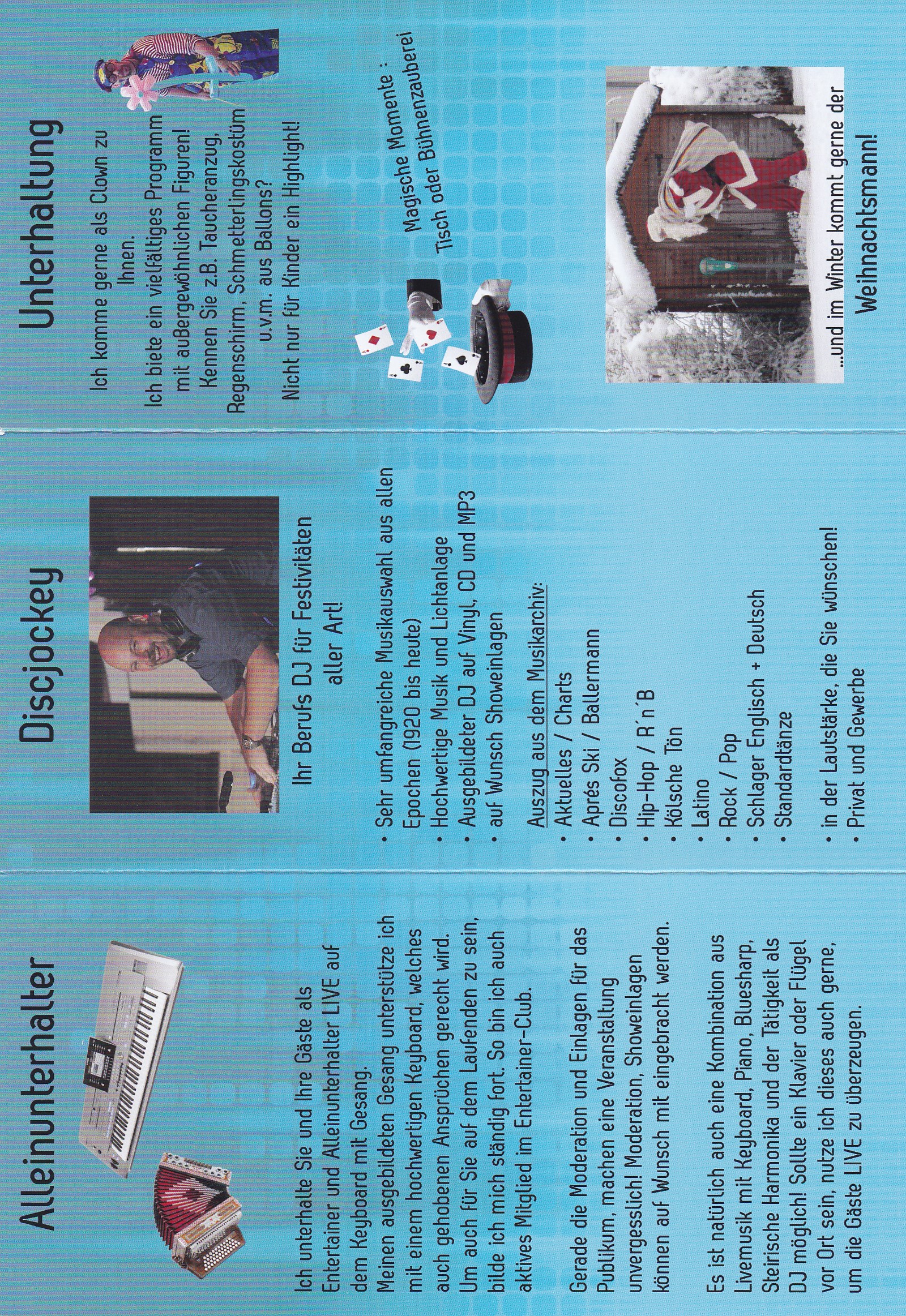 🎶 Musikvielfalt: Von aktuellen Charts über 70er, 80er, 90er, Rock, Schlager (deutsch/englisch), Discofox, kölsche Lieder, Volksmusik aus den Alpen, Ballermann bis zu Partykrachern – ich habe für jeden Geschmack den passenden Sound im Repertoire.
